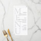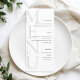 Create your own personalised wedding menu cards featuring modern typography and minimalist graphic design in black and white colour.