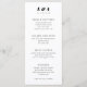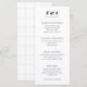 A simple and modern customisable skinny dinner menu in classic black and white. Featuring a bold serif two letter monogram and sleek date text plus the soft grey gridlines on the backer give any table or place setting a hint of modern flair.