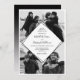 Invite your guests to celebrate your wedding day, with these modern black and white photo collage wedding invitations. Featuring 4 photographs with a modern diamond shaped label under a modern wedding invitation template that can be customised easily. All font styles, sizes and colours can be changed easily by clicking on the customise further link after personalising.