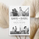 Create your own black and white wedding save the date cards featuring 4 of your favourite photos. Modern typography design with simple 4 photo collage.