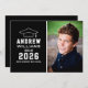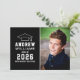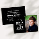 Announce your high school or college graduate in style with this graduation announcement and party invitation. Two-sided card features a senior portrait of the graduate with grad cap and simple and modern white typography design. The black background can be changed to a different colour with the "Customise It" feature, then Edit / Background to select another colour.