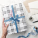 A wrapping paper designed with a modern black and white plaid pattern in large size. Customise the white background among other options.