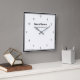 A modern black and white plain and simple square clock with numbers. Personalise by adding the name of your business and website. Choose a colour that suits your personal business needs.