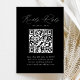 Make it easy for guests to RSVP to your wedding or event with these modern wedding RSVP cards with QR code. The elegant wedding enclosure cards display "Kindly Reply" in a white modern script with a black background. Personalise the card with your RSVP date, wedding website, and instructions for guests using the text templates provided. The back of the card provides space for additional text and/or photos. Designed to coordinate with our Modern Elegance wedding collection.