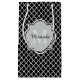 Modern Black and White Quatrefoil Monogrammed Name Small Gift Bag