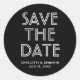 Personalised black and white wedding save the date sticker/envelope seal. Easily edit online with your wedding details.