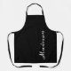 Show your style with this Modern Black and White Script Personalised Name Apron. This classy design has name in big white script lettering on left lower front with an upward position . The straps are black customisable to available colour option choices. Great for baking, cooking and more.