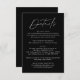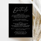 Simple and elegant wedding details card featuring a handwritten white script mixed with modern lettering against a black background. Personalise the minimalist wedding details card with your wedding details such as reception information, hotel accommodations, wedding website, etc. The black and white wedding details card is perfect for modern weddings.