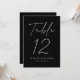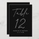 Simple, modern wedding table number cards featuring "Table" displayed in a handwritten white script with a black background (or a colour of your choosing). To order the black and white table cards: add your name, wedding date, and table number. Each number needs to be added to your cart individually. After you have finished adding each table number to your cart, simply checkout and wait for your beautiful table number cards to arrive!