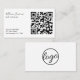 Simple business card featuring a clean and minimalist design with your QR Code on the right with your contact information to the left in a professional layout. The back has your logo. This modern black and white business card may be changed to any colour you wish by clicking the "customise" button and is great for any business, big or small.