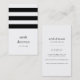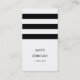 Modern and chic business card design in a unique vertical format features three wide black stripes on a white background, with your name and business name or title in an attractive mix of lowercase serif and modern caps typefaces. Add your full contact information to the back. Suitable for any occupation; example shown for interior design professions.