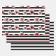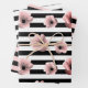 Modern Black and White Stripes and Pink Flowers Wrapping Paper Sheet