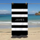 Personalised Modern Black And White Stripes Pattern Beach Towel.