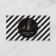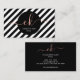 Chic and stylish, this modern business card features an elegant monogram in blush pink script calligraphy on a bold black and white stripes background. It's a perfect way to impress your clients with a feminine and professional design. Ideal for any professional in beauty-related industries such as a makeup artist, hair stylist, nail and lash specialist, beauty salon owner, and more. Simply add your initials, name, and business details including address, email, and website by clicking the "Personalise" button.