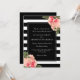 Modern Black and White Striped Wedding Invites with Coral and Pink Flowers. Created by Colourful Designs Inc. Copyright 2016