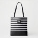 Modern Black and White Stripes with Monogram Tote Bag
