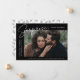 Share the news of your surprise engagement with these elegant photo engagement announcements. The design features the phrase "Surprise, we got engaged!" in a trendy white script and modern lettering on a black background. Your engagement photo is featured in the centre-right part of the design with your names and engagement date displayed on the left. Personalise the surprise engagement announcement by adding additional details below such as wedding city/state, wedding website, etc. The announcement reverses to display a black foliage pattern on a white background.