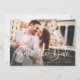 These modern, simple and elegant wedding save the date cards feature stylish handwritten script on the front as an overlay on your photo. The back has a simple white background with classic black text and another photo, along with a scannable QR code to add your wedding website.
