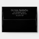 This modern wedding mailing envelope features a bold black background with the return address printed on the back flap in white art deco display typography, accented by a script zip code detail. A dramatic and striking option for couples who want their stationery to make a statement. Personalise with your names and mailing address.