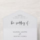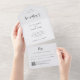 These modern, simple and elegant wedding all-in-one invitations feature a minimalist black and white text design with stylish handwritten script.