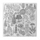A hand-drawn modern black and white decorative whimsical tree patterned ceramic tile. Created by Julie Nicholls©.