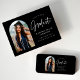 Trendy graduation announcement featuring the graduate's photo framed by a black arch with "Graduate" in a white handwritten script. Personalise the front of the arch graduation announcement card by adding the graduate's name, graduation year, school name, and future plans. The photo graduation announcement reverses to display a black and white dotted pattern. The announcement is suitable for both high school and college graduates.