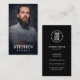 This modern and personal barbershop business card design features a professional photo of the barber, creating a strong and memorable visual impact. With a minimalist black and white design, the focus is on the barber's expertise and personality. Customise with your business name, contact information, and logo to create a unique and professional calling card for your barbershop.