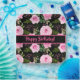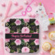 Beautiful Pink Watercolor Roses and bright greenery pattern on modern black paper plates customised with Happy Birthday typography.