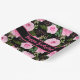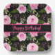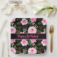 Modern Black Beautiful Pink Roses Happy Birthday Paper Plate
