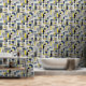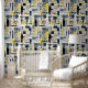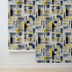 Modern Black Blue Yellow Cross Hatched Pattern Wallpaper