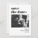 Save the date! Announce your wedding date to family and friends with the black and white save the date photo flat card. It features black bold typography with stripes pattern. personalise by adding a photo, names, date and other details. This modern photo save the date flat card is available in other colours and cardstock.