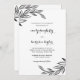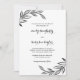 Chic and modern black and white wedding invitation features simple illustrated black botanical leaves and pretty calligraphy script. Shop this beautiful wedding collection for the coordinating wedding suite.