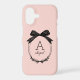 Modern Black Bow Stylish Girly Blush Pink Monogram iPhone 17 Case.