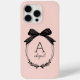 Modern Black Bow Stylish Girly Blush Pink Monogram iPhone 15 Pro Max Case.