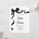 This modern black bow invitation blends a clean minimal layout with an elegant ribbon illustration for a simple and stylish wedding look. The bold contrast of black against white creates a crisp, timeless feel that works beautifully for classic, contemporary, or black tie celebrations. The text is fully editable, and you can also change the bow color to suit your palette, making it easy to personalize this card for your day. This design coordinates with matching pieces in the suite to carry the same modern bow aesthetic throughout your event.