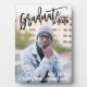Modern Black Brush Script Full Photo Graduation Photo Plaque. Congrats the GRAD! Congratulations on their well-deserved success and celebrate them with this beautiful tabletop plaque with easel stand. All the texts are pre-arranged for you to personalise easily and quickly with your own details.