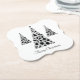Modern Black Christmas Tree Pattern on White Paper Coaster