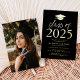 Invite guests to celebrate the grad with our modern class of 2025 graduation party invites. The invites feature a graduation cap at the top with "Class of 2025" displayed in gold foil lettering with a black background. Personalise the invites by adding the graduate's name, school, and graduation party details. The gold foil graduation party invites reverse to display the graduate's photo.