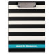 Modern Black, Cream & Turquoise Stripe Clipboard