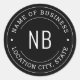 A modern professional custom branded sticker label design for your business features your business initials framed by the name of the company with location city and state. Other wording such as a slogan or website could also be included instead of the location. Black and white colours can be modified.