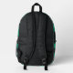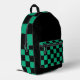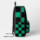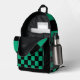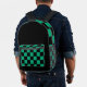 Stand out with the Print Cut & Sew Backpack, featuring a modern geometric pattern in vibrant green and blue tones on a sleek black background.