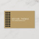 A gold hued card with an offset perforated pattern of circles gives an edgy and modern look to this designer's business card templates. © 1201AM CREATIVE