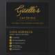 Promote your catering brand with this modern black and gold business card featuring a refined layout and elegant typography. Perfect for professional caterers, event planners, or private chefs, this design pairs timeless sophistication with clean modern style. The matte black background and warm gold accents create a luxurious, high-end look that communicates quality and trust. Ideal for weddings, corporate events, and fine dining services.
