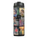 Modern black family photo collage family name thermal tumbler