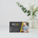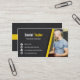 This modern, stylish and cool business card uses a colour palette of black, white and yellow. Black and white makes it professional and timeless while touches of yellow gives a sense of energy and positivity which is much needed for fitness training. The black background has a subtle rugged texture to it. Perfect for freelance personal trainers, fitness instructors and anyone in the fitness industry who wishes to communicate these qualities to their clients. Add your photo to give credibility and personal connection with potential customers.