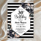 Modern Black Floral Striped 30th Birthday Party Invitation