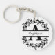 Modern Black Floral Wreath Split Monogram "A" Key Ring