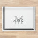 Custom-designed modern black kitchen hand towel featuring personalised family name monogram in modern hand calligraphy.