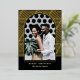 This beautiful holiday card features one photo in a modern arch shape, and elegant Merry Christmas typography in real foil. This trendy card also features a real foil striped geometric pattern with a stylish black background, and a solid white back where you can add a personal greeting if you like.