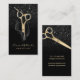 Modern Black Glitter Gold Scissor Hair Stylist Business Cards.